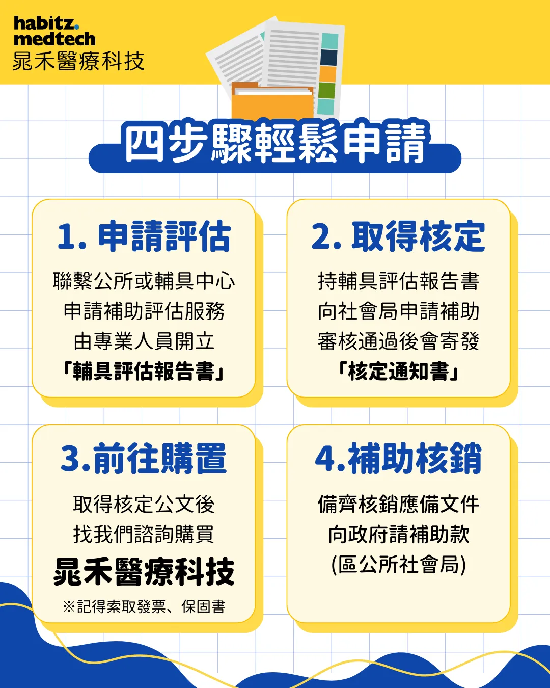 1️⃣先核定、後購買:一定要拿到 「 核定公文 」 後才能購買輔具2️⃣兩年四項:每人每2年以申請4項輔具補助為限